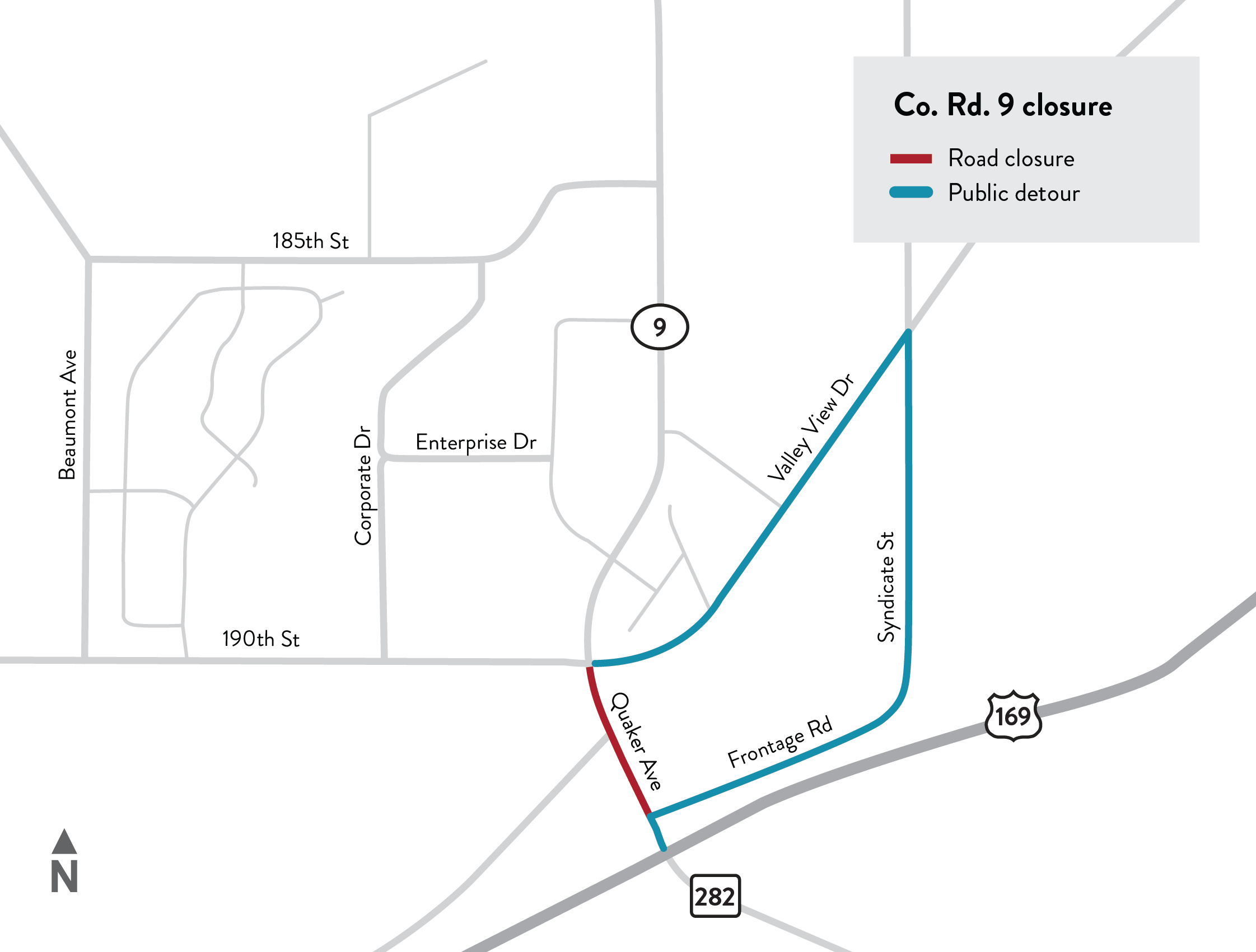 - Co. Rd. 9 is closed between Hwy 169 and 190th St./Valley View Dr.