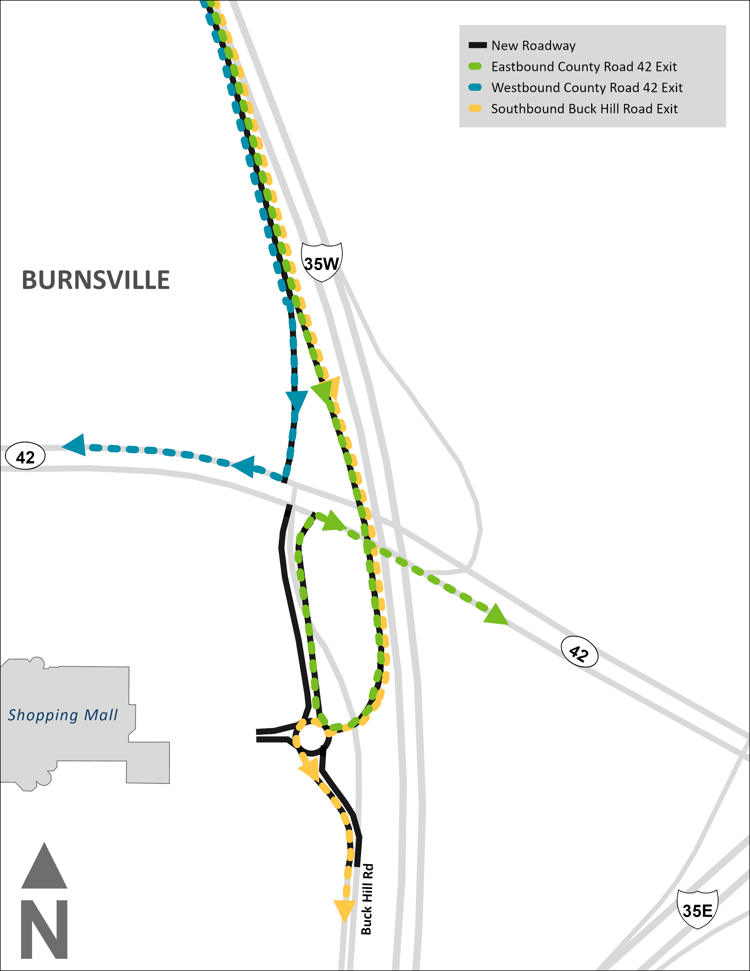- Access to eastbound Co. Rd. 42 from southbound I-35W will change the week of October 20. Motorists will begin to use the newly constructed ramp at Buck Hill Rd. to access Co. Rd. 42 from southbound I-35W.