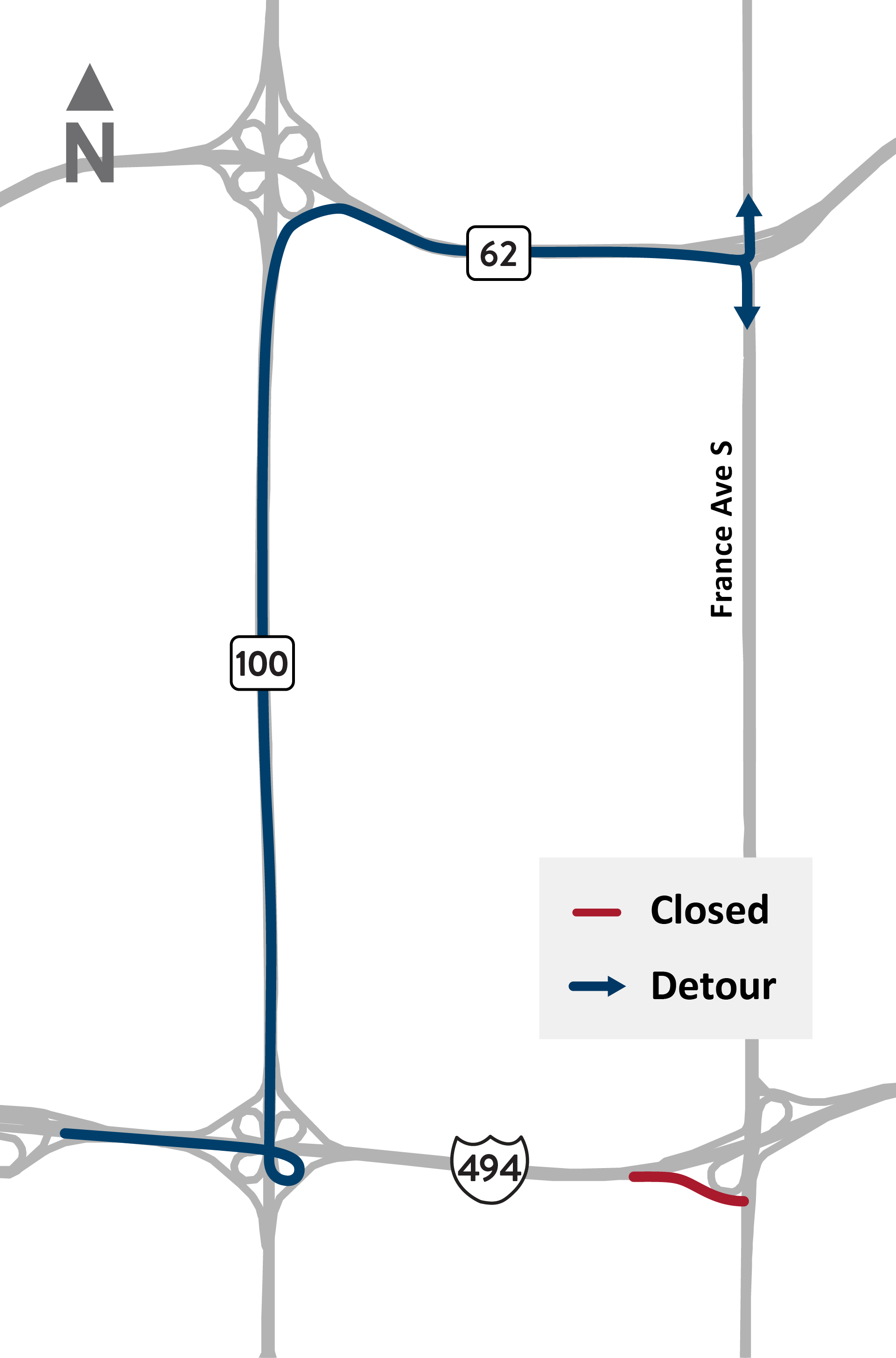 - Expect intermittent lane closures on I-494 in both directions between East Bush Lake Rd. in Edina and 12th Ave. North in Richfield