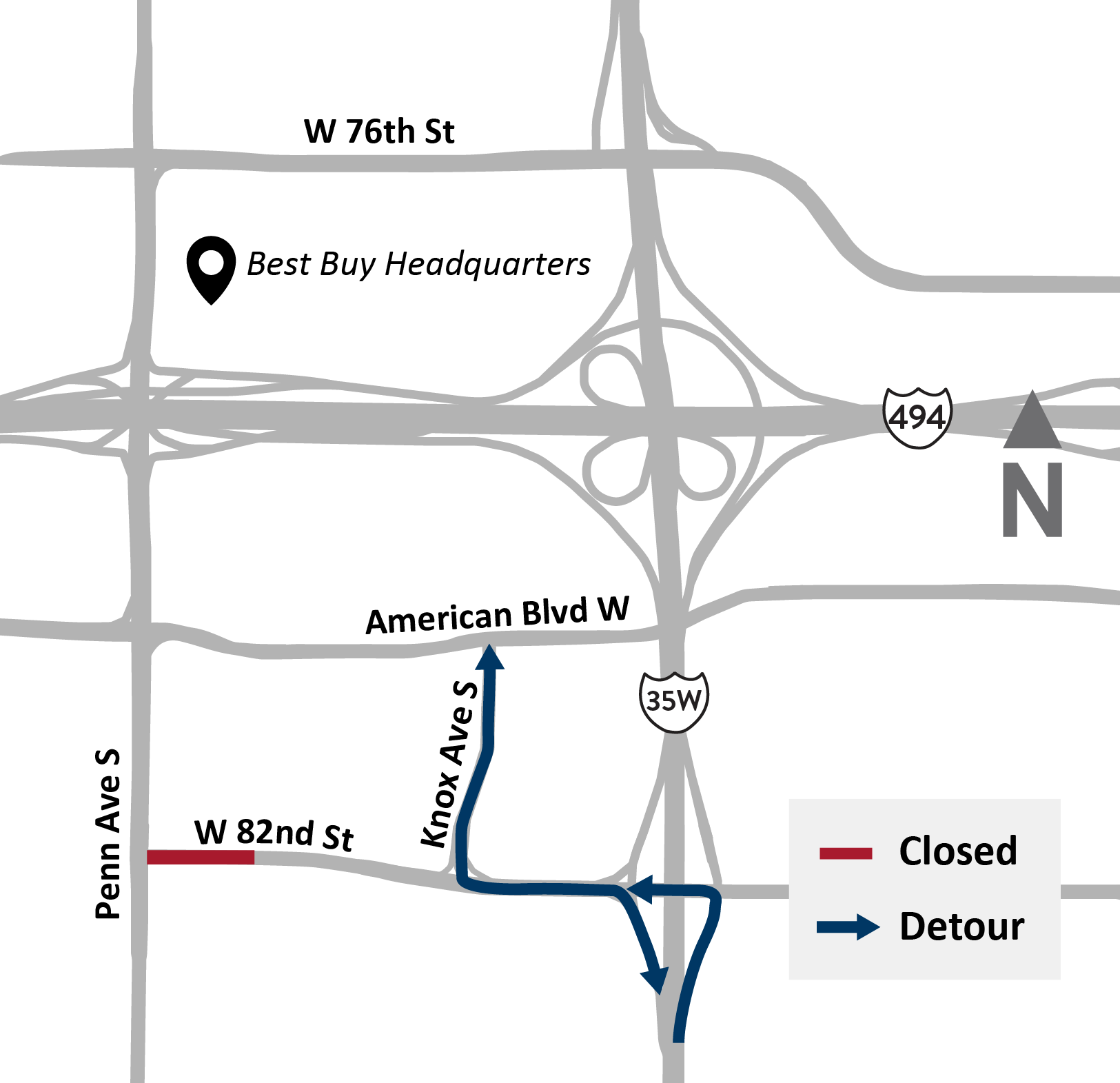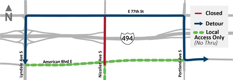- Nicollet Ave. is closed between American Blvd. and 82nd St.
