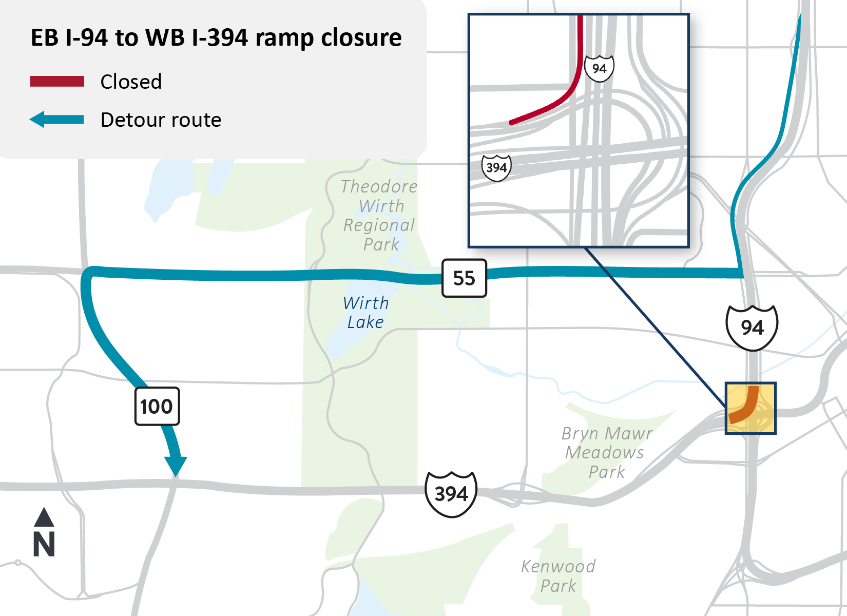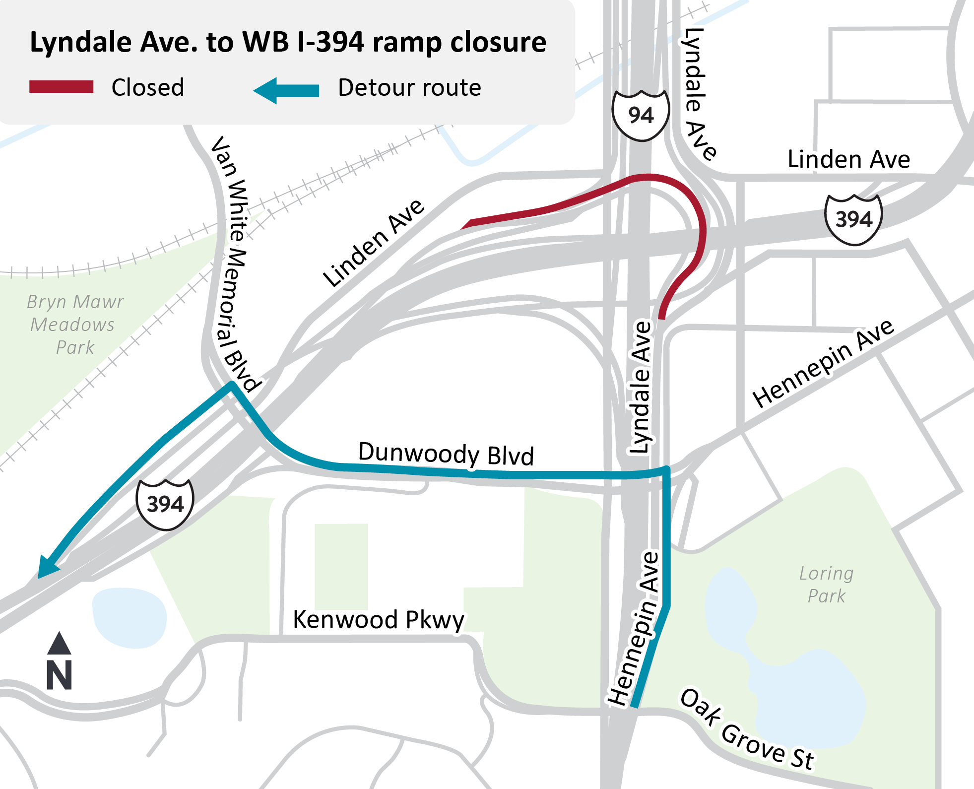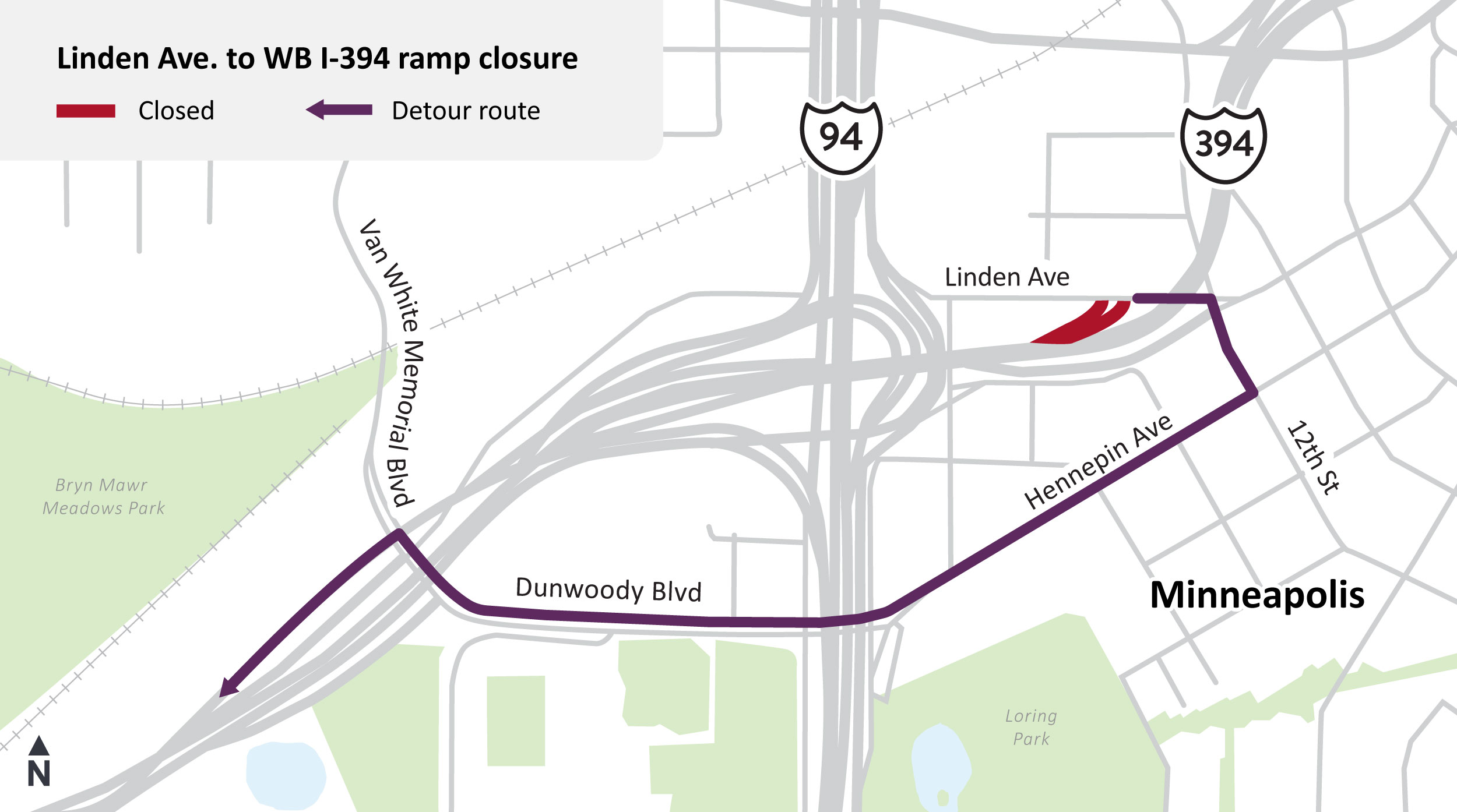 - The ramp from Linden Ave. to westbound I-394 is closed