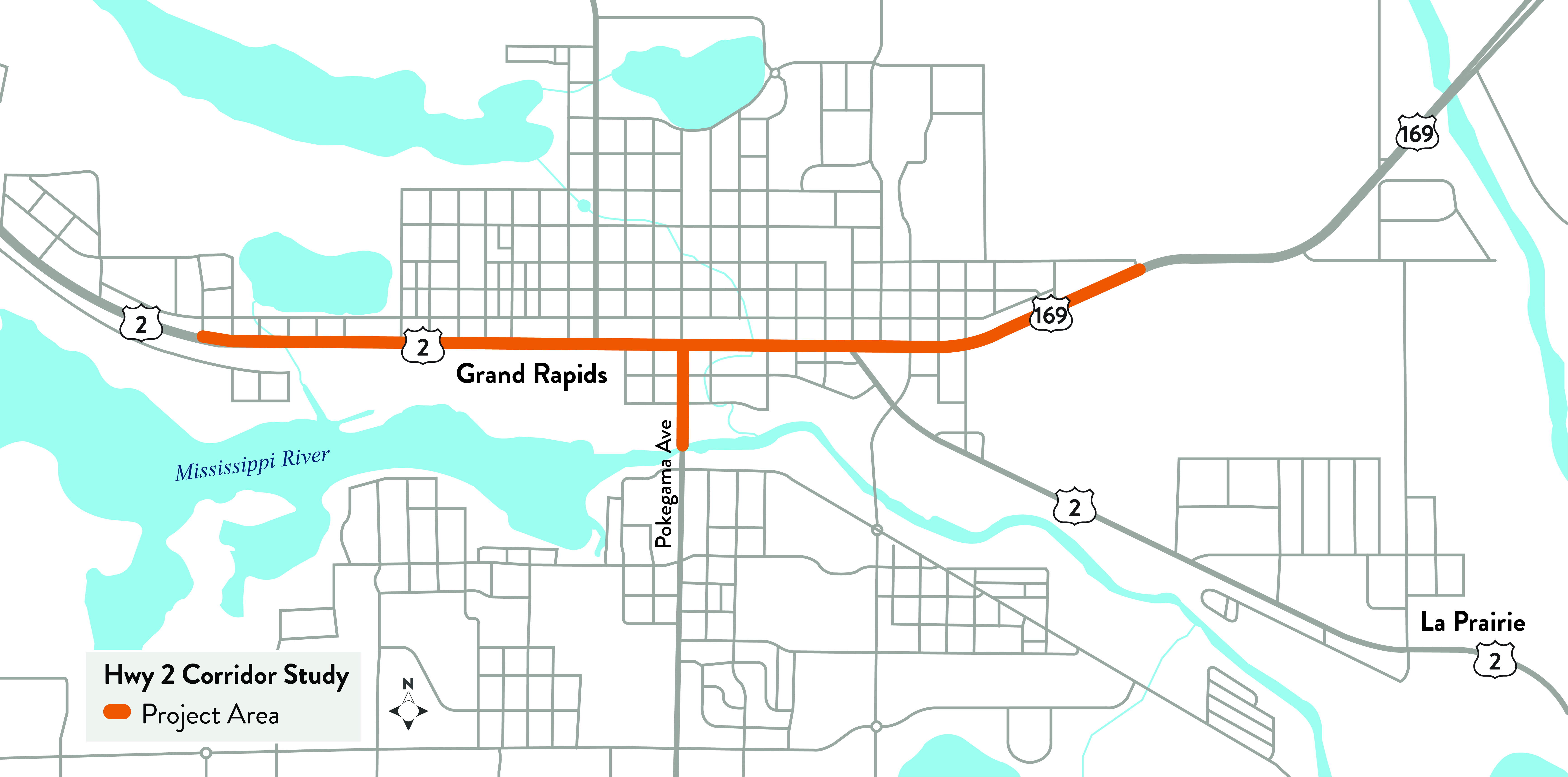Corridor study of the Hwy 2/Hwy 169 corridor from NW 19th Avenue to NE 7th Street from Hwy 2 to the Mississippi River. This corridor includes nine signalized intersections, 11 non-signalized intersections and five private accesses. MnDOT will be evaluating existing conditions (traffic volumes, operations and safety) and future conditions that account for growth and anticipated development in Grand Rapids and La Prairie.